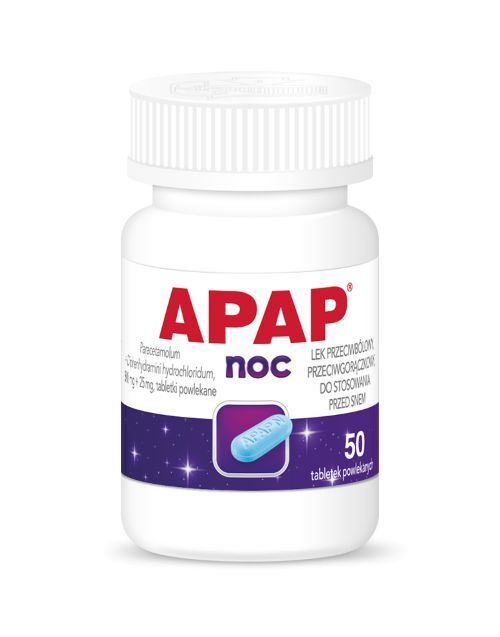 Lek z paracetamolem i substancją ułatwiającą zasypianie, na bóle różnego pochodzenia; dla młodzieży od 12 lat i dorosłych