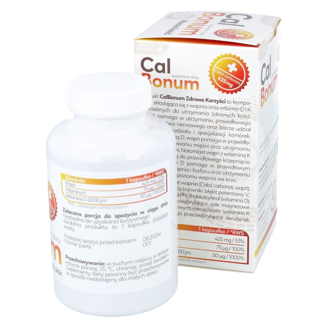 - produkt jest kompozycją składającą się z wapnia oraz witamin D i K potrzebnych do utrzymania zdrowych kości