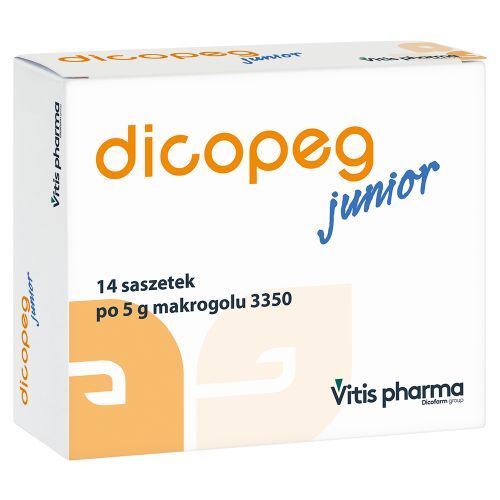 od 6 miesiąca życia do 2 lat (do 12 kg): 1-2 saszetki dziennie; od 2 do 11 roku życia (od 12 kg do 20 kg): 2-4 saszetki dziennie; powyżej 11 roku życia (lub > 20 kg): 2-6 saszetek dziennieDICOPEG JUNIOR 5 g - przeciwwskazania:
