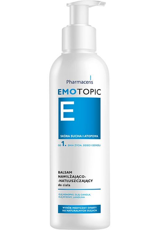 do codziennego stosowania w celu zapobiegania objawom atopowego zapalenia skóry (AZS) takim jak: suchość skóry, podrażnienia, zaczerwienienia. Polecany również dla suchej i wrażliwej skóry, z tendencją do nawrotów suchości i nadwrażliwości na czynniki zewnętrzne: mróz, wiatr, suche powietrze, substancje drażniące, odzieżEMOTOPIC balsam nawilżająco-natłuszczający do ciała - sposób użycia: