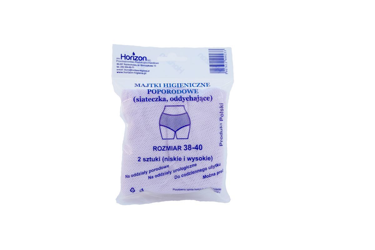 Majtki higieniczne poporodowe z siateczki, oddychające, bardzo wygodne i praktyczne. Doskonale utrzymują podkłady poporodowe we właściwym miejscu. Wielokrotnego użytku. Prać w temperaturze 30°C. Dwie sztuki w opakowaniu: niskie i wysokie. Do stosowania w połogu, przy problemach urologicznych, po zabiegach ginekologicznych.