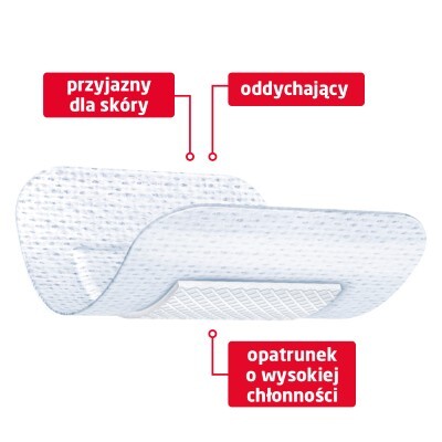 Sterylny plaster z opatrunkiem o wysokiej chłonności. Zapobiega ryzyku infekcji. Może być stosowany na niewielkie rany chirurgiczne oraz zranienia z umiarkowanym wysiękiem. Miękki, włókninowy plaster jest niewidoczny na zdjęciach rentgenowskich.