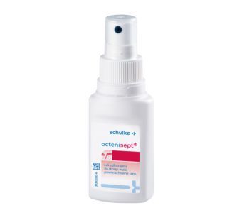 zalecane jest stosowanie w postaci nierozcieńczonej. Partie skóry, opracowane rany i błony śluzowe należy odkażać preparatem z atomizera lub jałowym gazikiem nasączonym preparatem. Należy przestrzegać wymaganego czasu oddziaływania minimum 1 min., wskazane przedłużenie czasu do 5 min. Jamę ustną należy płukać intensywnie 20 ml preparatu przez 20 sekund.OCTENISEPT - przeciwwskazania: