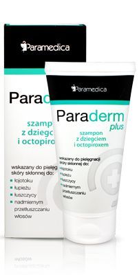 Paraderm Plus to szampon z oczyszczonym dziegciem brzozowym wzbogacony o Pirokton olaminy - Octopirox i amid kwasu undecylenowego. W jego skład wchodzą inne bioaktywne składniki, takie jak ichtiol jasny, biosiarka, gliceryna, mocznik, a także wyciąg z wierzby i wyciąg z drożdży, które doskonale uzupełniają znakomite właściwości szamponu. Paraderm Plus skutecznie ogranicza łojotok oraz wspomaga usuwanie łuski, nawilża i zmniejsza uczucie swędzenia, a odpowiednio dobrane środki myjące czynią proces mycia łatwym i szybkim. Charakterystyczny zapach po spłukaniu nie utrzymuje się.