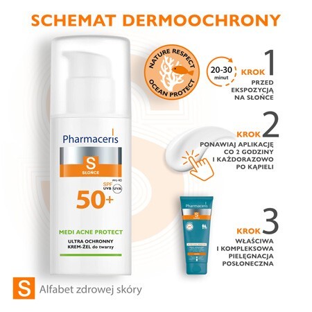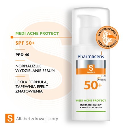 PHARMACERIS S MEDI ACNE PROTECT ultra ochronny krem-żel dla skóry trądzikowej, mieszanej i tłustej SPF50+ - wskazania: