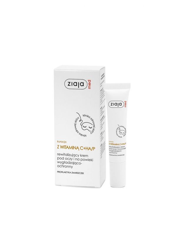 profilaktyka przedwczesnego starzenia się skóry - sugerowana pielęgnacja 30+; po zabiegach dermatologicznych i estetycznych, dla osób o obniżonej kondycji skóry, szarej i zmęczonejZIAJA MED KURACJA Z WITAMINĄ C+HA/P rewitalizujący krem pod oczy i na powieki - sposób użycia: